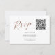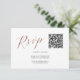**Descrição da lista:** Simplifique seu planejamento de casamento com nossas placas RSVP elegantemente projetadas, com um conveniente código QR que direciona os convidados para o seu site de casamento para respostas fáceis. Essas cartas sofisticadas combinam praticidade com estilo, complementando qualquer tema de casamento com sua elegante design. Personalize cada cartão com amplo espaço para texto personalizado na frente, incluindo detalhes como a data do casamento e o prazo RSVP. O código QR moderniza o processo RSVP tradicional, permitindo que os convidados confirmem sua presença com uma varredura simples. Isso os leva diretamente ao site de casamento personalizado, onde eles podem encontrar detalhes adicionais, deixar mensagens ou escolher opções de refeições. Criadas para conveniência e estilo, essas placas RSVP combinam elegância tradicional com funcionalidade moderna. Perfeito para o casal experiente em tecnologia, eles adicionam um toque de sofisticação ousada às suas comunicações de casamento, encantando seus convidados e gerentes de listas de convidados de fazeres.