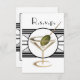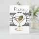 Pesadamente influenciado pelo estilo de decoração de arte deco, este design de vidro martini fofo vem completo com uma azeitona! Um convite único e na moda, que seria excelente para festas de coquetéis, eventos de caridade e outras associações divertidas. *NOTA IMPORTANTE Exclua o texto de amostra indesejado dos modelos se você quiser deixar o vazio de áreas personalizadas, qualquer texto presente será impressão no produto final.