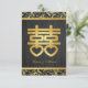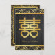 Cartões de RSVP de Felicidade Dupla Chinesa para Casamentos. Fundo Elegante negro e Dourado.