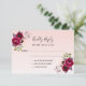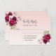 Um cartão RSVP elegante e romântico para um casamento com modelos para resposta por data e nomes. Um gradiente de ouro rosa, fundo ombre. Decorado com flores roxas escuras e burgundy e rosa cor-de-água. O título Resposta Rápida é escrito com um moderno script de estilo escrito à mão. Rosa, gradiente de ouro, flores e modelos para seus nomes e a data do casamento.