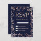 Rosa de ouro elegante, moderno e chic, e padrão de desenho floral azul de marinho azul de tendência, Cartões RSVP. Este design clássico e sofisticado é perfeito para qualquer evento de na moda e tendências, incluindo casamentos e ocasiões cotidianas.Personalize com sua própria mensagem na frente assim como um monograma personalizado na parte de trás. Todas as impressão de fotos.
