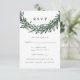 Cartões postais de RSVP de Casamentos Elegantes e verticais, apresentando lindamente louros desenhados à mão contra um fundo de cor verde-d-água profundo e todos os detalhes fáceis de RSVP.