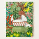 Um jardim floral verde de selva moderno e fofo pintado à mão com animais fofos e flores.