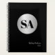 Acompanhe os compromissos e nunca perca uma audição! Com um planejador de calendário personalizado com um fundo preto destacando suas iniciais de monograma dentro de um elegante fundo prateado. Crie facilmente o seu próprio logótipo, inserindo o texto das suas iniciais. Adicione seu texto para uma aparência personalizada que se ajuste ao seu estilo.