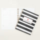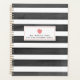 Um planejador de professores com um padrão de faixa de cor de cinza escura com sotaques cor-de-rosa incluindo maçã no centro. Personalize o texto na frente.