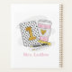 Este planejador personalizado do primeiro ano manterá planos de lição em um lugar. O padrão tem um notebook branco com bolinhas preta com um dourado, café cardíaco, régua, caneta e lápis. Este design de notebook branco com bolinhas preta pode ser encontrado em outros itens do meu compro, PageCreativeDesigns.