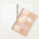Planeador mensal/diário chic feito em cor-de-rosa-pincelado, com gráficos de traçados de tinta dourados listrados. Uma área de texto branco, na frente do planejador, tem texto personalizado pronto para personalizar.