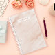 Eleve sua organização com este elegante planejador que apresenta um design de mármore em tons suaves de pêssego e rosa. A opção de nome personalizável adiciona um toque pessoal, tornando-o um presente único e atencioso. Perfeito para a mulher moderna que aprecia um toque de sofisticação, este planejador oferece amplo espaço para tarefas diárias, compromissos e anotações. Mantenha-se por dentro de sua agenda e objetivos com este planejador chic e funcional que complementa seu estilo.