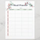 Um planejador semanal de refeições pode ajudá-lo a manter uma dieta mais saudável e desperdiçar menos comidas. Alive-te da luta diária do que cozinhar e planejar as suas refeições com uma semana de antecedência! Sua semana não começa na segunda? Personalize os dias da semana. Faça o Planejador de Refeições seu e mude o título para o que quiser!