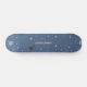 Um skate temático com planetas, estrelas e um vaivém espacial em estilo cartoon sobre fundo azul e um nome personalizável. Boa ideia de presente para uma criança (ou não) que ama aventuras espaciais!
