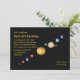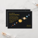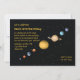 Um convite colorido com oito planetas cercados por espaço negro. Um belo convite de aniversário para seu astrônomo.O cartão é fácil de personalizar com seu texto, fonte, cor da fonte e escolha de seis tipos de papel.