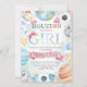 Celebre a chegada do seu pequeno com este Planeta Espacial Exterior Houston Temos uma Menina, convite para chás de fraldas! Esta coleção apresenta gráficos temáticos adoráveis do espaço aquarela, incluindo astronautas, planetas, estrelas fotografadas, foguetes e discos voadores colocados sobre um fundo aquarela azul.