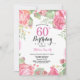 Convite De Aniversário Para 80 De Botânica Convite de Aniversário para Mulheres de Rosa Floral Flor Floral de Água. Rosa Rosa Rosa Elegante e Flores de Pequim. Aniversário Adulto. Fundo Branco.Preto & Branco. 13 15 16º 18º 20 21 rua 30 40º 50º 80 de 60º 70 de 100º, qualquer idade.
