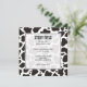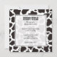 Convite de padrão de fundo de vaca sem costura preto e branco com campos de texto personalizados.