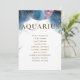Ajude seus convidados a encontrar sua mesa com este cartão elegante de assentos celestiais com os nomes dos convidados. Belo cartão celestial da constelação de Aquário com lindíssimas manchas de aquarela e mapa celestial armando seus nomes de convidados mesas. Coleção com vários cartões de gráfico de assentos de constelações diferentes para escolher, mas, caso precise de mais, sinta-se à vontade para adicionar qualquer outro nome de constelação em qualquer um dos nossos modelos de cartão, para poder completar o conjunto. Cartão de lado duplo para que os hóspedes possam procurar os nomes de ambos, frente ou verso. Lindo com clipes ou furos de socos para monitores suspensos, ou uso com mesa/quadro. Constelação e nomes de convidados em matiz de ouro. Parte de nossa coleção "Mystic Garden Celestial" com uma variedade de produtos de coordenação disponíveis, incluindo placas de números de tabela com constelações e menus.