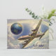 chá de casamento do casal. As faixas de correio aéreo Vintage estão na parte de trás deste convite para que possa criar um convite exclusivo e personalizado! Clique no botão "personalizar" para acessar as ferramentas de design para alterar a cor de fundo ou o estilo da fonte! Muitos estilos de fonte a serem escolhidos! Viagem e design de ilustração de Vintage apresentando um Douglas DC-7, avião comercial de quatro motores, hélice. voando pelo mundo. Nuvens brancas lisas no céu acima da Terra.
