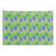 Padrão xadrez de plantas de aloe vera verde lima em vasos azuis com fronhas de travesseiro de fundo roxo.