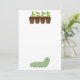 Este design apresenta uma lagarta e algumas plantas em vasos.