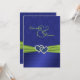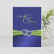 Adicione alguma faísca a seu casamento ou a celebração especial com estes azuis marinhos do convite e convite verde do casamento tema damasco com OLHAR plissado e um verde IMPRESSO na fita e um par de FALSO azul brilham e corações juntados jóia do diamante nela, mostrado aqui no papel básico. Há uma área dianteira do monograma que você possa mudar para fora para serir suas necessidades, ou remove-a inteiramente se você prefere aquele. Todo o texto é customizável e assim que é as escolhas de papel. Se você exige quaisquer outros artigos neste mesmo design, os artigos de harmonização existentes estão mostrados abaixo.