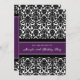 Personalizar 60º Convites de aniversário em elegante berinjela roxa escura, preto e branco clássico cor damasco floral. Adicione seu nome e detalhes da festa para um convite de aniversário exclusivo e na moda 60º.