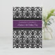Personalizar 75º Convites de aniversário em elegantes beringelas escuras roxas, preto e branco clássico padrão de vintagem floral. Adicione seu nome e detalhes da festa para um convite de aniversário exclusivo e na moda.