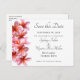 Plumeria cor-de-rosa salva o cartão postal personalizado atualizado com flores realistas em cartões brancos. Lindas flores havaianas, chamadas de frangipani ou plumeria, fazem uma grande fronteira ao longo do lado esquerdo. O texto está fora do centro e é fácil personalizar linha a linha usando fontes de caligrafia impressas. Inclua o endereço de correspondência e o endereço de devolução na parte traseira, ou exclua para solicitar o vazio.