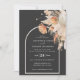 Cartão de convite para casamento de na moda de grama da boêmia negra e moderna. Lindas aquarelas florais impressas à mão e texto de script. Moderno em design de tendência.