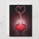 Um conceito de amor mostrando uma poção vermelha em uma garrafa de vidro em forma de coração aberto e ascensão de vapor para formar um coração sobre ela