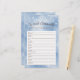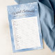 Este ursinho que podemos esperar, o Pastel Blue Word Scramble Game fará com que seus convidados chás de fraldas gritem de ouvido a ouvido. O design bonitinho com um urso sonhador flutuando em nuvens azuis de aquarela é perfeito para qualquer bebê a ser. Este jogo é tão fácil de jogar - apenas desembaraçar as palavras relacionadas ao bebê na folha. Com certeza todos se misturando e rindo juntos. A mãe que será adorará ver seus entes queridos se divertindo no seu chá!