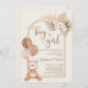 Podemos esperar convite neutro em gênero, Menino ou Rapariga Revelem Convocação Neutra do Urso de Teddy, Urso de Beige Neutro em Gênero com balões para um gênero neutro