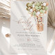 Podemos Esperar! :) Este pequeno urso está esperando a grande festa do bebê, sentado num balão de ar quente construído com balões azuis, castanhos e creme. As aquarelas brancas e a tipografia moderna complementam a design. Personalize este belo convite para Chá de fraldas do Urso com os detalhes do seu chá de fraldas de forma fácil e rápida, pressione o botão personalizá-lo para reorganizar e formate o estilo e o posicionamento do texto.