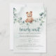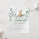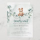 Podemos Esperar! :) Este ursinho está esperando a grande festa do bebê, sentado no seu balanço do eucalipto. As aquarelas brancas e a tipografia moderna complementam a design. Personalize este belo convite para Chá de fraldas do Urso com os detalhes do seu chá de fraldas de forma fácil e rápida, pressione o botão personalizá-lo para reorganizar e formate o estilo e o posicionamento do texto.