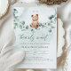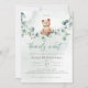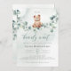 Podemos Esperar! :) Este ursinho está esperando a grande festa do bebê, sentado no seu balanço do eucalipto. As aquarelas brancas e a tipografia moderna complementam a design. Personalize este belo convite para Chá de fraldas do Urso com os detalhes do seu chá de fraldas de forma fácil e rápida, pressione o botão personalizá-lo para reorganizar e formate o estilo e o posicionamento do texto.