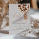 Podemos Esperar! :) Este ursinho está esperando a grande festa do bebê, sentado em um balão de ar quente construído com balões marrom e creme. As aquarelas brancas e a tipografia moderna complementam a design. Personalize este belo convite para Chá de fraldas do Urso com os detalhes do seu chá de fraldas de forma fácil e rápida, pressione o botão personalizá-lo para reorganizar e formate o estilo e o posicionamento do texto.