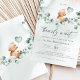 Podemos Esperar! :) Este ursinho está esperando a grande festa do bebê, sentado no seu balanço do eucalipto. As aquarelas brancas e a tipografia moderna complementam a design. Personalize este belo convite para Chá de fraldas do Urso com os detalhes do seu chá de fraldas de forma fácil e rápida, pressione o botão personalizá-lo para reorganizar e formate o estilo e o posicionamento do texto.