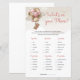 Embarque em uma épica busca de diversão e entusiasmo com o cartão de jogo "What's in Your Phone", cor-de-rosa, "What's in Your Phone", destinado a um chá de fraldas feminino. Essa atividade temática promete uma aventura selvagem enquanto os convidados descobrem e compartilham seus tesouros digitais através de uma série de desafios e surpresas brincalhões. Prepare-se para explorar territórios não mapeados, conecte-se com outros aventureiros, e se divirta com a alegre antecipação de celebrar a chegada de um novo filhote. Deixe os jogos começarem e deixe a jornada ser tão memorável quanto é emocionante!Contate-me para encontrar itens ou para personalizar, Rosas de Blush ©