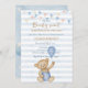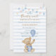 Convide os entes queridos para comemorar o seu bebê com este adorável convite para chás de fraldas "Podemos Esperar Mais Cedo". Apresentando um doce ursinho em um cavalo balançante e tons azuis suaves, é perfeito para um chá de fraldas aconchegante e elegante.