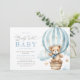 urso de pelúcia, podemos esperar chá de fraldas convite com um tema de bebê azul. O texto e as cores podem ser personalizados.