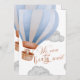 "Celebre a chegada do seu filhote com este adorável convite para chás de fraldas 'Nós podemos esperar muito'. Apresentando um doce ursinho flutuando num balão de ar quente, cercado por nuvens suaves e peludas, este convite traz um toque divertido e caprichoso para a sua celebração. Perfeito por acolher seu filhote no mundo!"