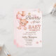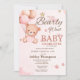 O adorável convite para Chás de fraldas de espera é perfeito para a futura mãe e pai. A design cor-de-rosa e bege é moderna e contemporânea. O cartão é feito de fardos pesados, pelo que irá durar anos. Adicione seus detalhes de chá de fraldas a este urso fofo com balões rosa e bege.
