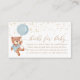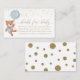 Você está procurando um tema de chá de fraldas de menino fofo? Veja se podemos fazer um alerta para o cartão de gabinete do bebê. Apresenta um único ursinho de cor d'água fofo com um balão azul, pintado pelo Club Magique. Tem sutil brilho dourado na frente e um padrão dourado de ponto brilhante na parte de trás. O pedido "livros para bebê" é escrito com um belo roteiro caligráfico. Você pode adicionar seus detalhes muito facilmente nos campos de modelo ou até personalizar o estilo e as cores da fonte usando a ferramenta design. Temos uma coleção inteira de suprimentos para seu chá de fraldas com este tema do urso. Vá verificar agora. Festa de excelente!