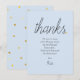 Poema de agradecimento para chá de bebê menino com estilo chic script. Apresenta texto em script elegante com um coração de amor dourado em um fundo azul bebê. O verso tem corações de amor dourados espalhados em um fundo correspondente. Uma maneira perfeita de dizer obrigado! Criado por Thisisnotme©