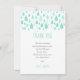 Poema de Agradecimento para Chá de Bebê Gotinhas Lindas. Criado para combinar com a nossa coleção de chá de bebê/sprinkle de gotas de chuva verde menta. Gotículas de chuva verde menta chic caem em direção à sua mensagem de agradecimento personalizada, poema e nomes neste lindo cartão de agradecimento de bebê. O verso apresenta uma chuva adicional de gotas de chuva, adicionando um toque extra ao seu evento especial. Uma maneira perfeita de dizer obrigado!