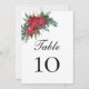 Flores de poinsetos vermelhos e verdes nestes cartões de número da mesa de casamento bonito. Veja nossos produtos correspondentes na nossa Coleção de Casamentos de Natal de Poinsettia. Consulte os produtos correspondentes aqui: https://www.zazzle.com/collections/poinsettia_winter_christmas_holiday_wedding_suite-119436617847447300
