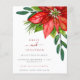 Uma alternativa de orçamento com custo-benefício em um tamanho menor de 4,5 x 5,6” semi brilho 110lbs de peso, que é de espessura semelhante a um cartão postal (no entanto, não é adequado para uso como cartão postal). POR FAVOR, OBSERVE que há UM convite por folha. Com casamentos de feriado em mente, este design tem uma grande poinsétia vermelha vibrante e folhagem a partir do canto superior direito e fluindo ao longo do lado direito. A tipografia elegante é ligeiramente deslocada para a esquerda. Personalize facilmente o texto com seus próprios detalhes. Você também pode alterar os estilos e cores do texto, bem como as cores do fundo através da opção "personalizar mais" se desejar.