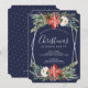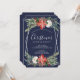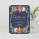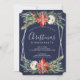 Elegantes aquarelas festivas bordas de buquê de Natal com poinsettia vermelha-coral e buquê de rosas brancas, convite de janto personalizado.