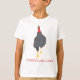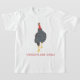 Pintura de um peru que caminhava alto, em pontilhismo, com "Os perus são legal", impressa em camisetas.