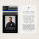 Honor a brave and dedicated police officer with this elegant memorial prayer card featuring a dignified Thin Blue Line flag design and a personalized photo tribute. The front showcases their picture framed in black and gold with the heartfelt sentiment IN LOVING MEMORY OF NAME, "Born" date and "End of Watch" date. The back includes a comforting prayer accented with a simple cross to support family and friends as they remember an officer who served with courage, honor and unwavering commitment. A meaningful keepsake for a police funeral, memorial service or Celebration of Life, this prayer card offers a lasting tribute to their service and sacrifice. Its small and portable size of 3.5x2" (wallet-sized) makes it convenient for loved ones to carry it with them as a reminder of your loved one’s life, service and spirit.