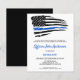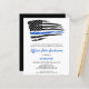 Convites De Promoção Da Polícia De Linha Azul-Fino. Celebre a promoção do seu policial e convide amigos e familiares para a sua polícia com este moderno Convite de Promoção da Polícia de Sinalizador Thin Blue Line. DESIGN americano na bandeira da Polícia, cores, design branco azul-preto moderno. Este convite de promoção de policial também é perfeito para a cerimônia de promoção do departamento de polícia, e festa. Veja nossa coleção para combinar presentes de promoção policial, favoritos para festas de promoção policial e suprimentos. COPYRIGHT © 2021 Judy Burrows, Black Dog Art - Todos Os Direitos Reservados. Polícia de Orçamento - Fim de Convite de Festa de Linha Azul
