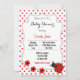 Convite de Chá de fraldas com tema de joaninha e fundo de pokadot.